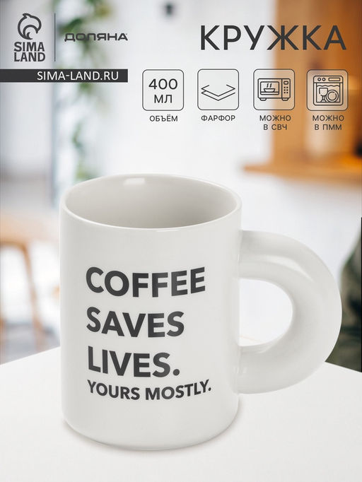 Кружка Доляна Coffee time, фарфор, 400 мл, 12.5×8×10.8 см, фарфор, белая