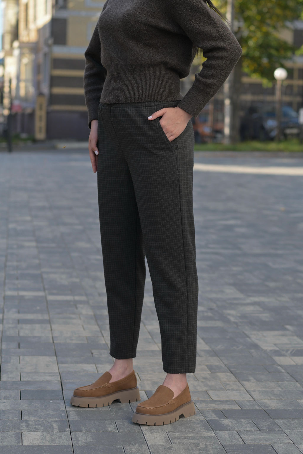 Удобные и любимые всеми брюки теперь выполнены из качественной костюмной ткани в клетку и прекрасно впишутся в осенне-весенний сезон. Брюки, зауженные к низу, имеют длину 7/8, что делает их универсальными на рост от 156- 174 см. По переду имеются 2 боковых кармана, по задней половинке имитация кармана «в рамку». Широкая резинка плотно и комфортно фиксирует изделие по линии талии.