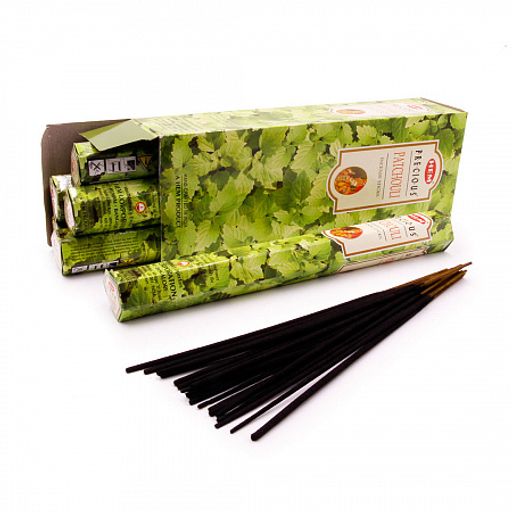 Благовония - лучший подарок! Благовония - средство для ароматизации помещения. Ароматические палочки благовония Precious PATCHOULI (Драгоценный Пачули) торговой марки HEM, Индия. Блок содержит 6 шестигранников по 20 г (20 ароматических палочек) вес брутто 1 блока - 285 г; Состав - бамбуковая основа, древесный уголь, композиционная масляная ароматическая эссенция. Размеры блока шестигранников 255Х92Х60 мм Длина ароматической палочки 23см Аромат благовоний Precious PATCHOULI (Драгоценный Пачули) горьковатый и смолистый, но одновременно тёплый, создающий особое, острое и чувственное благоухание. Пачули считается магнитом для привлечения богатства и процветания. С ним связывают успех в делах, плодотворную работу, стабильность и растущие доходы. На Востоке палочками пачули окуривают кошельки, денежные купюры и даже кредитные карточки! Среди сотен разновидностей благовоний найдите свой аромат, который подойдёт именно Вам. Способ применения: 1. Поднесите ароматическую палочку к источнику открытого огня. 2. Дождитесь воспламенения края палочки. 3. Погасите пламя ароматической палочки, воздействуя на неё интенсивными потоками воздуха. 4. Установите тлеющую аромапалочку в специальную подставку, или удерживайте её вертикально в руках. Внимание! Подожжённые ароматические палочки - это источник открытого огня. Во избежание воспламенения не оставляйте зажженную аромапалочку без присмотра. Для фиксации ароматической палочки используйте специальную подставку. Не используйте благовония палочки на сквозняках и в близи легко воспламеняемых предметов и веществ. Держите благовонные палочки вдали от детей, в герметически закупоренной таре. Условия хранения: хранить в тёмном, прохладном месте, в герметичной таре. Дата изготовления: на упаковке. Срок годности: не ограничен. Информация о продукте на русском языке - на каждом блоке. В наличии только свежие благовония. Аланкара - прямые поставки благовоний оптом из Индии от ведущих производителей ароматических палочек и ароматических эссенций. У нас Вы найдёте всё для ароматерапии. Мы сможем удовлетворить запросы даже самых требовательных арома гурманов. Ароматические палочки оптом и в розницу. Подставки для благовоний оптом и в розницу.