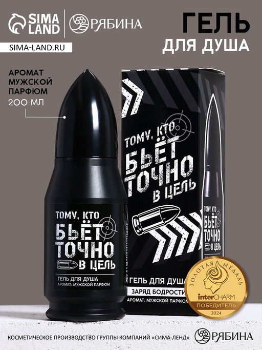 Гель для душа во флаконе пуля в коробке Тому, кто бьёт в цель, 200 мл, аромат мужской парфюм