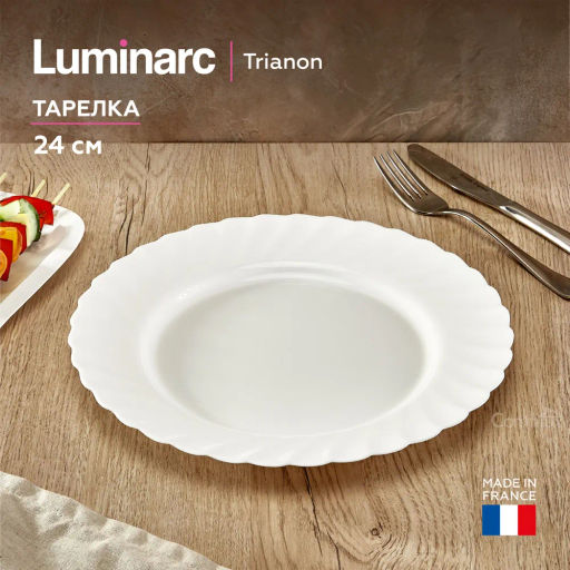 Обеденная тарелка от французского бренда Luminarc станет настоящим украшением на вашем столе, посуда станет незаменимой для обеденных приемов и ужинов. В серию Trianon входят: салатники порционные и большие, формы для запекания, обеденные и десертные плоские тарелки, суповые глубокие на 6 персон. Тарелки сервировочные подойдут для подачи вторых блюд, различных десертов, овощных и фруктовых салатов. Обеденные тарелки сделаны из гладкого, блестящего, закаленного стекла насыщенного цвета. Материал устойчив к появлению сколов, к использованию в микроволновой печи и посудомоечной машине. Посуда не впитывает посторонние запахи и сохраняет первоначальный цвет. Каждое изделие обладает минималистичным дизайном, украшенным ажурным бортиком с высоким качеством изготовления, что делает посуду идеальным выбором как для праздничного стола, так и для повседневного использования.