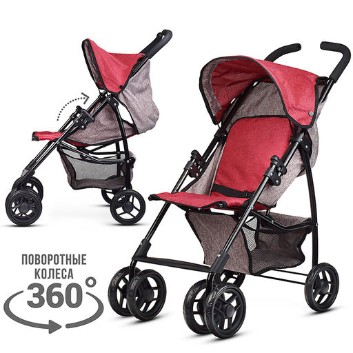 Коляска для кукол складная, с корзиной и козырьком, цвет серо-бордовая