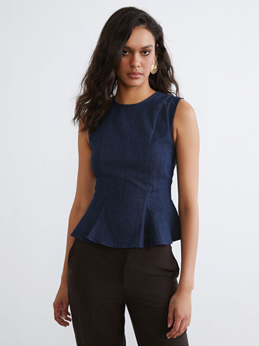 Bisiklet Yaka Peplum Jean Bluz