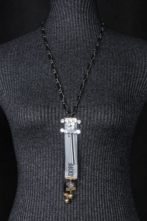 Стильный модный подвес на шнурке из металлической цепочки и замшевого шнурка. Кулон в виде текстильных лент украшен подвеской из сияющих кристаллов. Примерьте его с белой рубашкой и подтяжками!