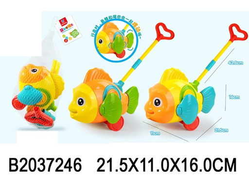 • Каталка "Рыбка", ручка 43,8см (2037246) 2 цвета в ассорт., шевелит плавниками и хвостиком, в сетке 21,5*16см