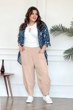 Элегантные брюки-султанка из мягкой струящейся ткани с крэш эффектом. Модель отлично сидит за счет высокой посадки и комфортной резинки на поясе. Накладные карманы по бокам добавляют практичности и функциональности. Модель с комфортной посадкой не сковывает движений. Зауженные книзу брючины, оформленные по бокам внахлест, визуально стройнят и зрительно вытягивают ноги.  Комфортная модель - отличная база для создания разнообразных образов. Их могут смело носить как юные, спортивные барышни, так и изысканные дамы в возрасте. Правильно подобрав аксессуары, можно создавать смелые, утонченно женственные, строгие, деловые образы.