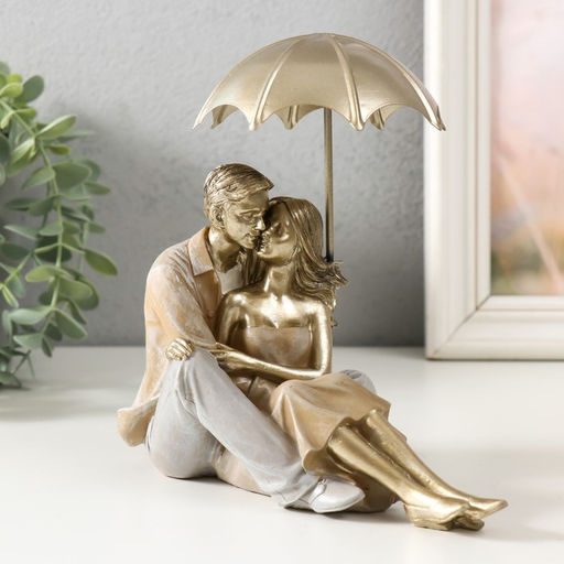 Фигурка полистоун «Влюблённая пара под зонтом - нежность», бежевый, 18×18×10 см