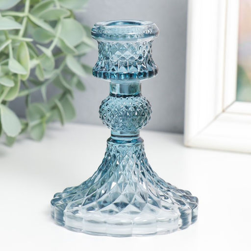 Стеклянный подсвечник на 1 свечу «Женева», d=2.2 см, синий, 10.5×7.7×7.7 см