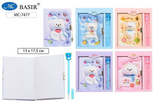 • Блокнот детский, с замком, в подар.коробке, 18*13 см + шариковая ручка (MC-7477) "Мишки", жестк.обл., 48л.