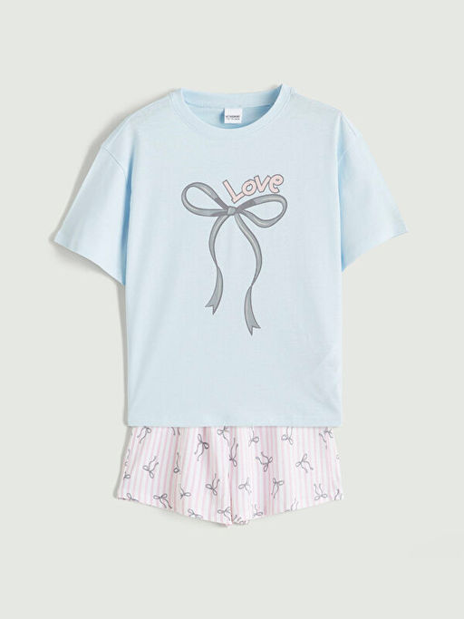 Fiyonk Bask?l? K?z ?ocuk ?ortlu Pijama Tak?m?