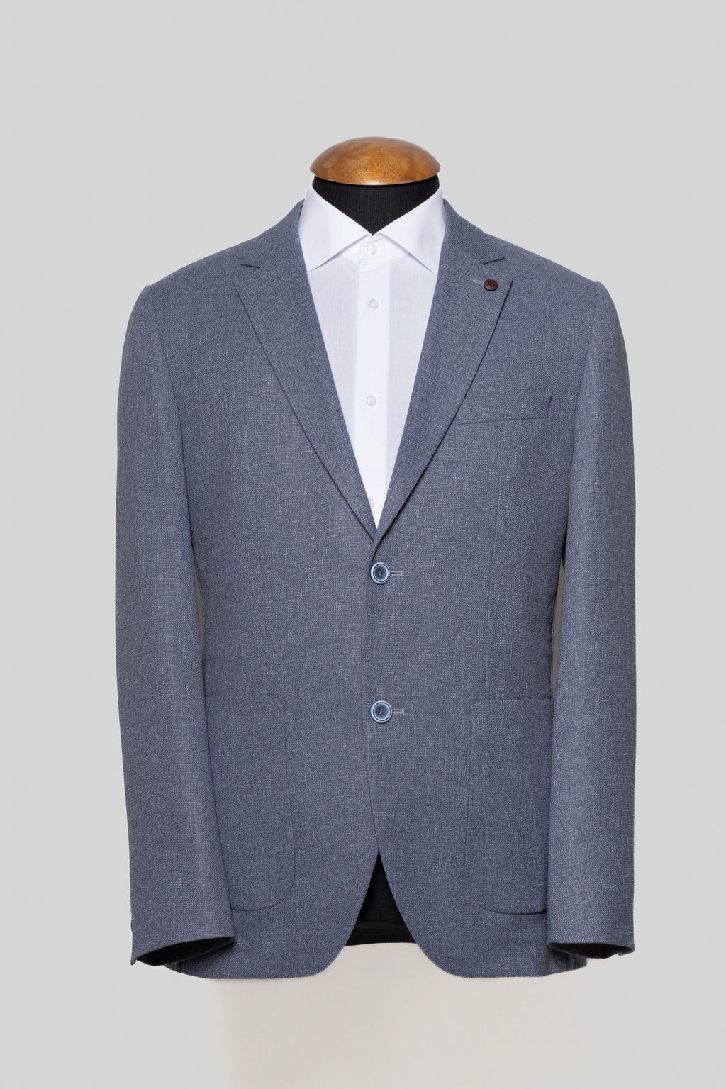 Пиджак прилегающего силуэта (Slim), однобортный, с застежкой на две петли, с прямыми лацканами.