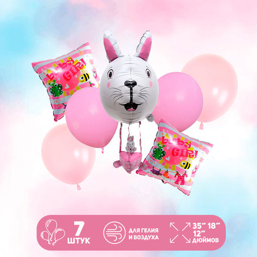 Воздушные шары, набор «Зайчик», латекс, фольгированные, 7 шт.