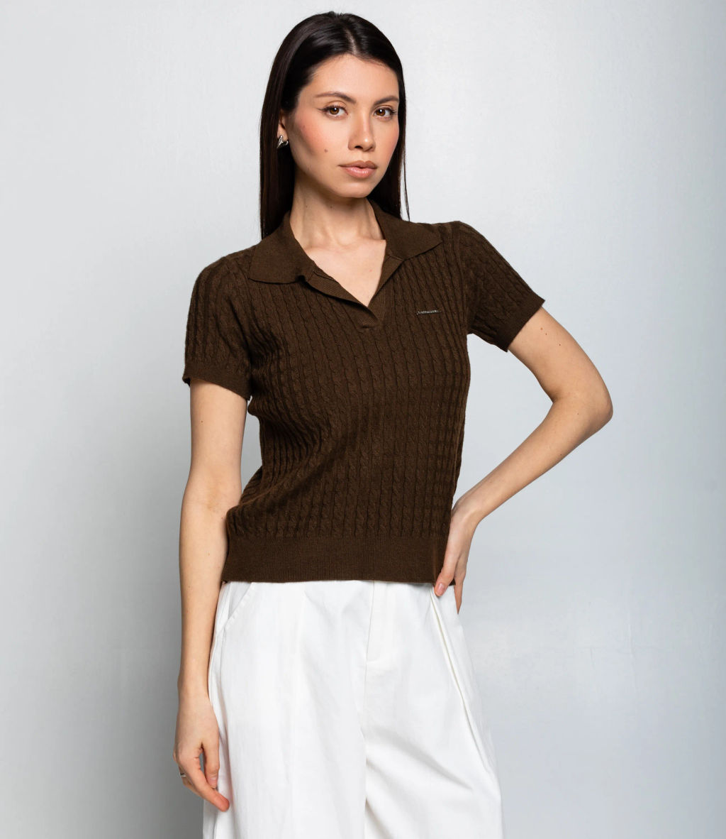 Эта футболка прекрасный выбор для вашего магазина, предлагая стильный и универсальный дизайн, который станет отличным дополнением к гардеробу ваших клиентов. Футболка-поло с коротким рукавом и классическим воротником, выполнена из фактурной вязки с рельефными вертикальными узорами. Компактный крой подчёркивает фигуру, длина укороченная, заканчивается выше талии. На груди небольшой вышитый логотип. Ткань эластичная, плотно прилегает к телу, сочетает комфорт и аккуратный внешний вид. Выполненная из 65% хлопок и 35% полиэстер, футболка обеспечивает отличное качество и приятные тактильные ощущения. Независимо от сезона, она станет любимым элементом в гардеробе ваших клиентов. На странице сайта доступна таблица размеров, что позволит вашим покупателям легко найти подходящий вариант. Установленная цена делает эту футболку доступной для широкой аудитории, что обеспечит вам высокий уровень продаж.­