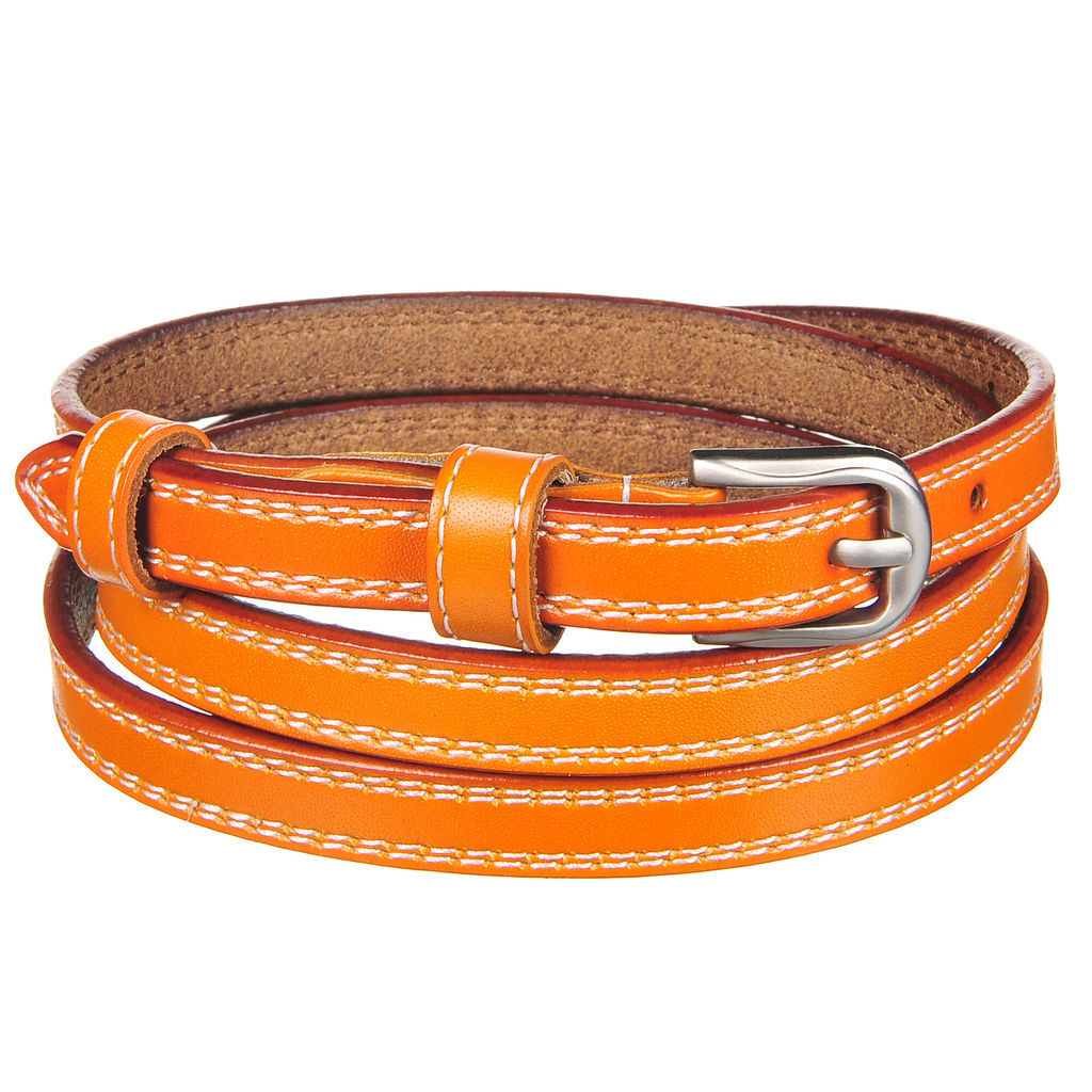 Великолепный узкий ремень в этническом стиле. Выполнен из натуральной кожи со строчкой. Декорирован пряжкой цвета перламутровый никель.
