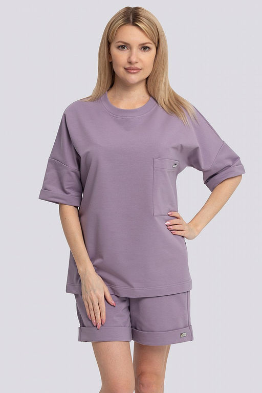 Хотите удобный летний женский костюм с шортами, но не знаете какой выбрать? Комплект с шортами и футболкой выполнен из плотной хлопковой ткани футер 2х-нитка. Трикотаж не скатывается и не растягивается даже при многочисленных стирках и постоянной носке. Летний комплект состоит из базовой футболки и широких удлиненных шорт с карманами. Этот спортивный костюм отлично подойдёт для прогулок и путешествий. Костюм оверсайз очень удобный и комфортный, не сковывает движений. Модель идеальна для летних прогулок в городе, активного отдыха и повседневной жизни. Футболку с прямым силуэтом oversize и спущенным рукавом можно комбинировать с джинсами или спортивными штанами. Шорты трикотажные на широкой резинке можно комбинировать с топом или майкой, взять с собой на занятия спортом или фитнесом. Футболка свободного кроя. Спущенная линия плеча. По низу рукава отворот. Отличительный элемент - нагрудный накладной карман. Шорты свободного кроя, пояс на резинке. В боковых швах карманы. По низу брючин отвороты. Состав трикотажа: 75% хлопок, 20% полиэстер, 5% спандекс.