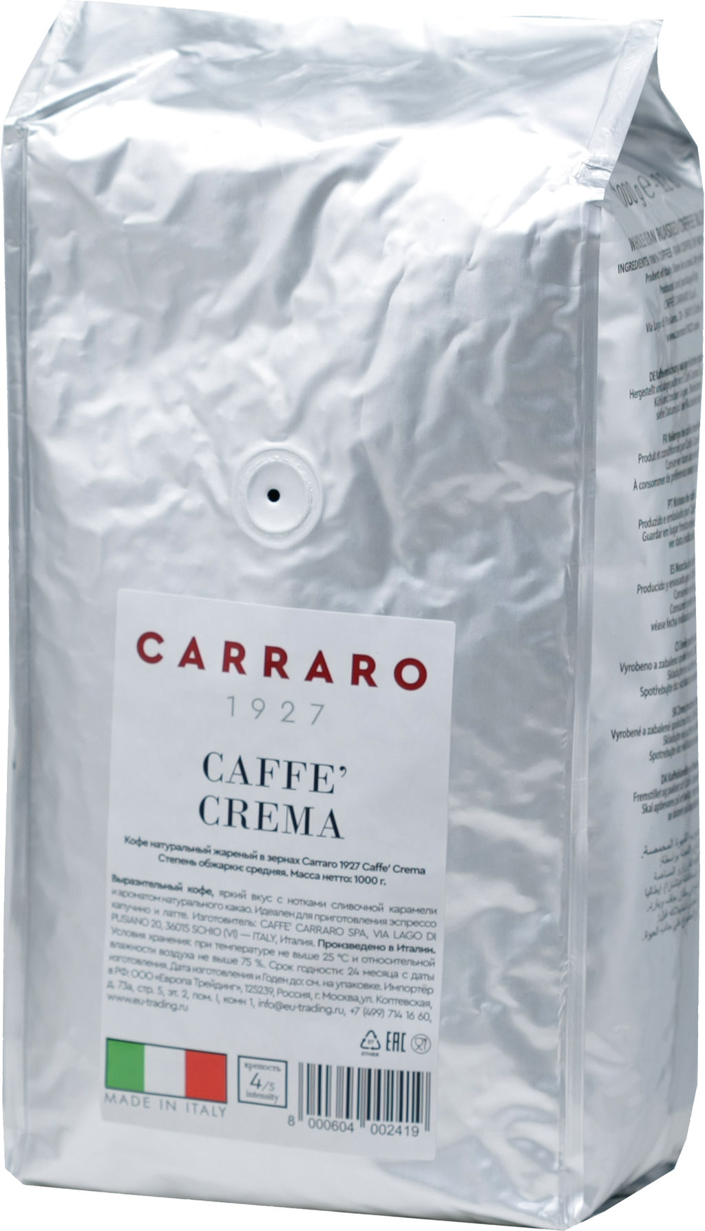 • Carraro. Caffee Crema (зерновой) 1 кг. мягкая упаковка