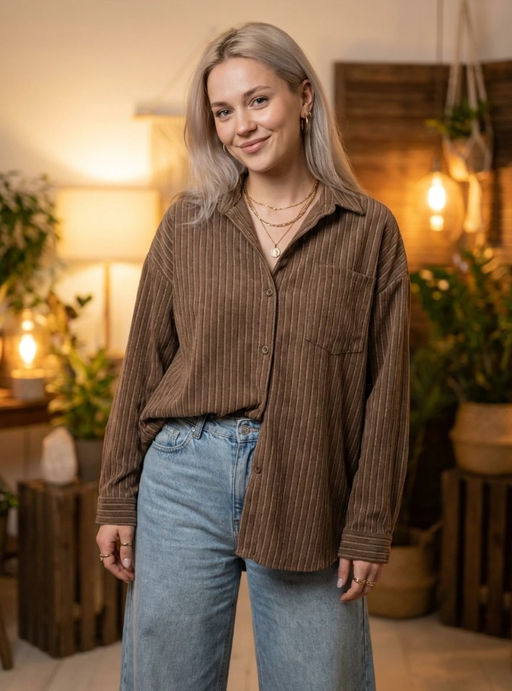 • K13372 Рубашка OVER SIZE КОРИЧНЕВЫЙ
