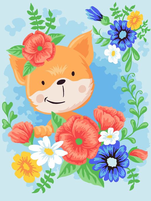 • Кристальная (алмазная) мозаика ФРЕЯ ALVK-89 Лисенок в цветах 40 х 30 см