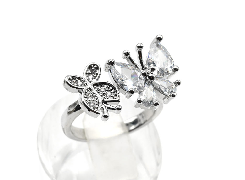 Кольцо бабочка 20*12мм цв.хрусталь Радуга камня