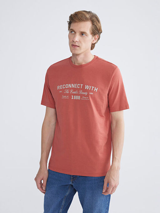 Bisiklet Yaka Bask?l? Penye Erkek Ti??rt