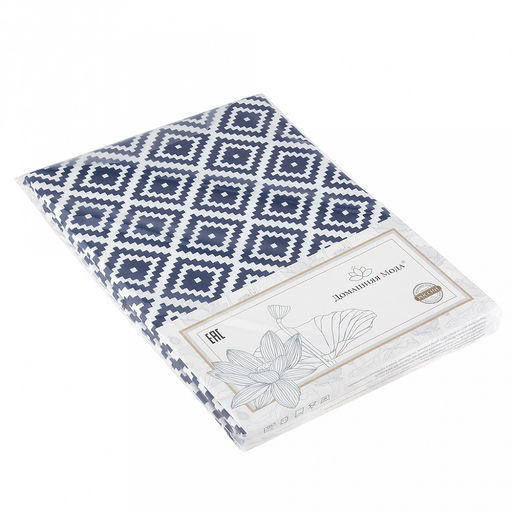 • Скатерть 200х145см "Синий орнамент", длина стола до 160см, на 6-8 персон, рогожка 176г/м2, хлопок 100%, упаковка классическая 28х41см, "Домашняя мода" (Россия)