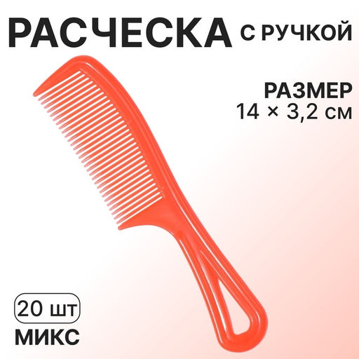 Цена за 14 шт. Расчёска с ручкой, 14×3.2 (±1) см, фасовка 20 шт., МИКС