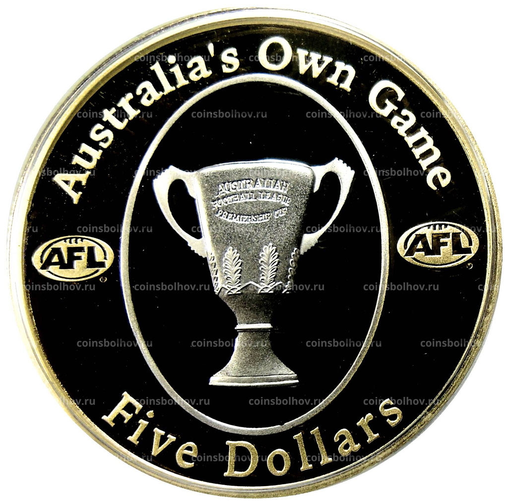 • Монета 5 долларов 2004 года Австралия  кубок по Австралийскому футболу (Австралийская футбольная лига, в коробке)