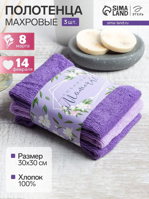 Набор махровых полотенец Любимой мамочке 30?30 см - 3 шт., 100% хлопок 340 г/м?