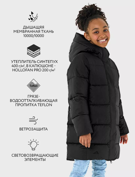 Утеплитель: синтепух 400 г/м2, в капюшоне - HOLLOFAN 200 г/м2