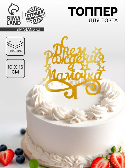 Цена за 4 шт. Топпер для торта «С днём рождения, мамочка»