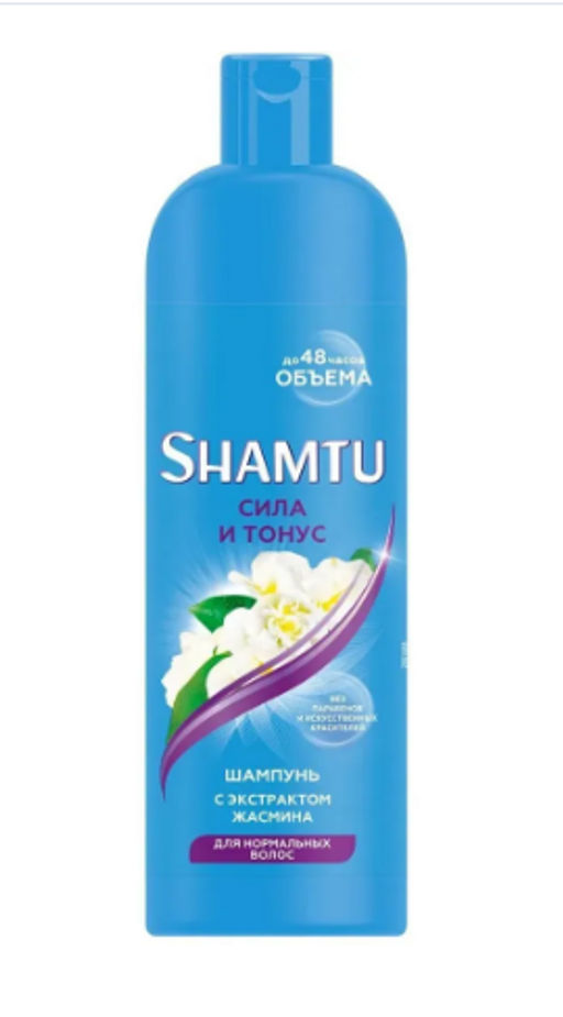 Shamtu Шампунь Сила и тонус с экстрактом жасмина, 500 мл. Шампунь Shamtu Сила и тонус с экстрактом жасмина и пуш-ап эффектом воздействия на волосы объемом до 48 часов. Наполняет волосы стойкостью. Без парабенов и искусственных красителей.