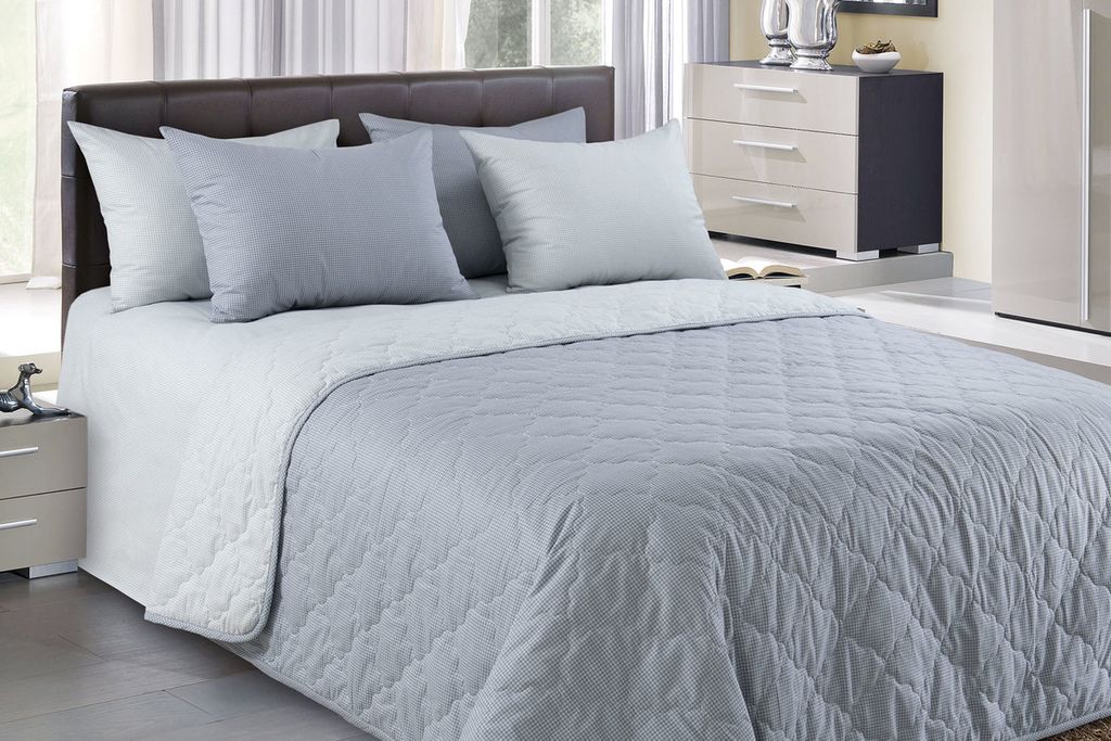 Декоративное стеганое покрывало на кровать из перкаля (100% хлопок).