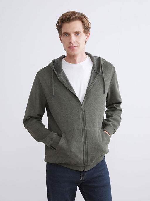 Kap??onlu Uzun Kollu Erkek Fermuarl? Sweatshirt