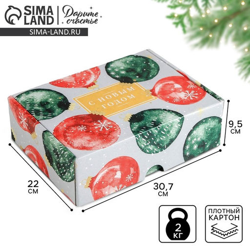 Форма: Прямоугольная. Ширина, см: 22. Высота, см: 9.5. Глубина, см: 30.7. Допустимый вес вложения, г: 2000. Тематика: Новогодняя. Рисунок: Да. Крышка: Нет. Символ года: Нет. Тематика праздника: Новый год. Колёса/ролики: Нет. Вид: Складные коробки. Размер: Большой (25-45 см). Бесплатная доставка: Да. Наша разработка: Да.