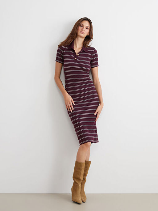 • Polo Yaka ?izgili Elbise