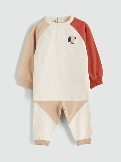 Bask?l? Erkek Bebek Sweatshirt ve E?ofman Alt 2li
