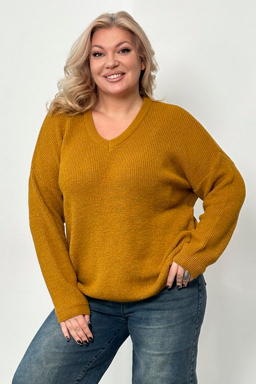 Свитер вязаный V-вырез горчичный