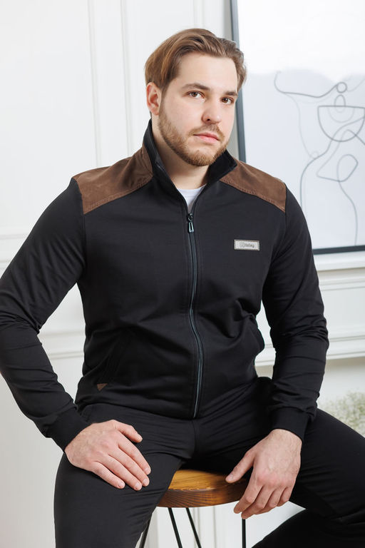 Верх — толстовка на молнии с воротником-стойкой. Аккуратные вставки из искусственной замши на плечах, локтях и воротнике создают эффектный акцент и добавляют изделию благородный вид. Манжеты по рукавам и низу обеспечивают комфортную посадку и сохраняют форму.
