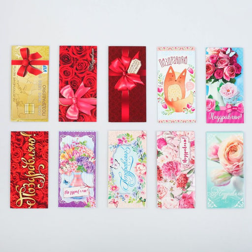 Конверт для денег Поздравляю, набор 10 шт. отличный вариант для тех, кто не любит тратить время, бегая по магазинам в поисках конвертов.