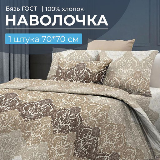 Наволочка 70*70 см (1 штука) из бязи ГОСТ, плотность ткани 140 г/м2, на клапане глубиной не менее 25 см. При такой ширине клапана подушка не будет выбиваться из наволочки. Это очень удобно! Наволочки из бязи ГОСТ подойдут хозяйкам, которые выбирают оптимальное сочетание цены, практичности и достойного качества. Это ткань очень плотная, лощеная, имеющая длительный срок службы. Ну и конечно, абсолютно натуральный состав - хлопок 100 %. Мы используем только натуральные материалы и передовые технологии, а наши опытные специалисты обеспечивают качественный пошив. Наши изделия произведены в Ивановской области, имеют сертификацию качества "ГОСТ 31307-2005", а также зарегистрированы в государственной системе маркировки "Честный знак". Обращаем внимание на то, что наволочки кроятся из разных мест принта, поэтому расположение рисунка может отличаться от представленного на фото. -- Характеристики -- Вес: 180 кг Размер наволочки: 70x70 Замок наволочки: С клапаном Ткань: Бязь ГОСТ Состав: 100 % хлопок Плотность: 140 г/м2 Плотность плетения: Высокая Отделка: Без отделки Режим стирки: При 40 градусах Цвет: Бежевый Расцветка: Маркиз Вид принта: Вензеля Целевая аудитория: Взрослая