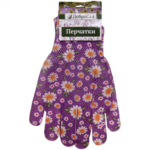 Цена за 12 шт. Перчатки нейлоновые "Лайт-Ромашки" с ПВХ точкой 8 р-р ДоброСад
