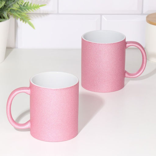 Цена за 34 шт. Кружка для сублимации, розовый глиттер, логотип, 320 мл
