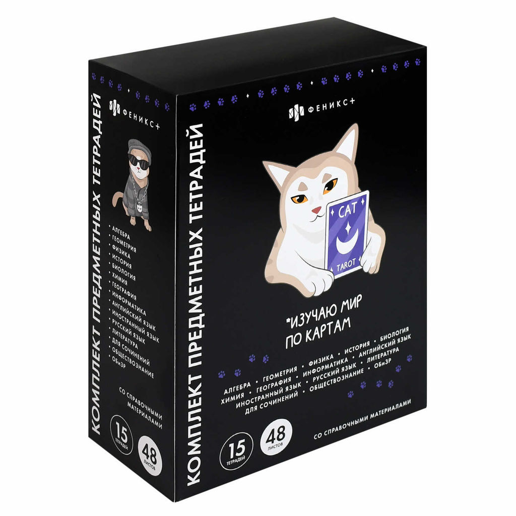 • Комплект тетрадей общих, предметных арт. 70053 КОТЫ МЕМЫ/48 л., А5+, вн.блок - клетка/линия, белый офсет, мягкий переплёт (2 скобы), облож.- мелованный картон 190 г/м?, выборочный ТВИН УФ-лак, Подкладные листы со справочной информацией/