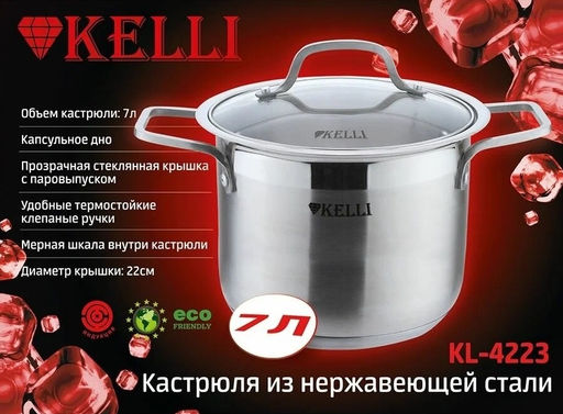 • Кастрюля нерж. 7 л "Kelli", арт. KL-4223
