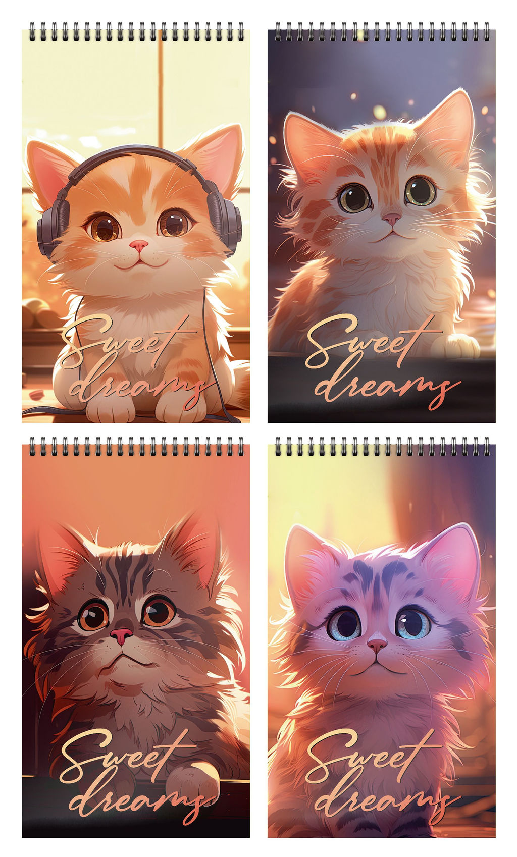 Цена за 5 шт. Блокнот А7 40 л. клетка Schoolformat ЛОУ-ФАЙ КОТЫ на гребне, мелованный картон, сплошной У...