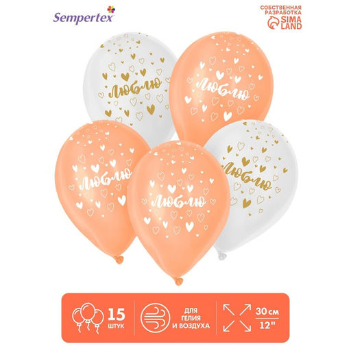 • Воздушный шар латексный 12" «Люблю», пастель, цвет розовый, белый, 15 шт.