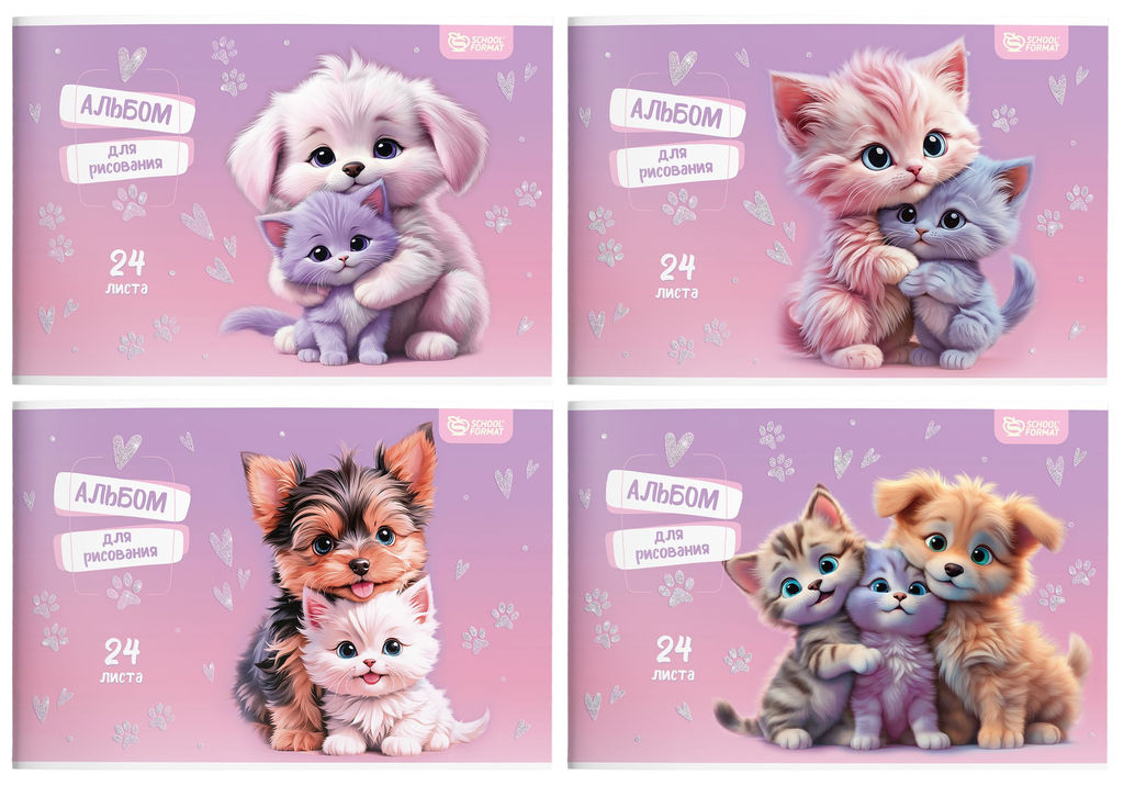 • Цена за 2 шт. Альбом для рисования 24 л. А4 на скрепке Schoolformat ОБНИМАШКИ мелованный картон, выбороч...