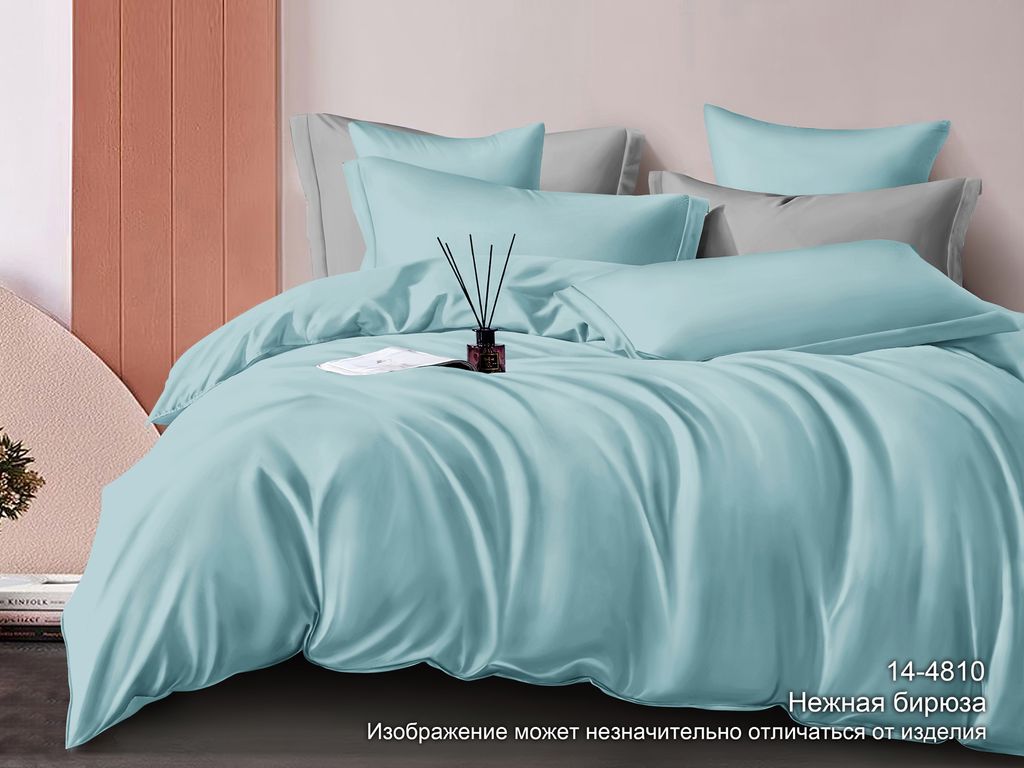 • НЕЖНАЯ БИРЮЗА Сатин Премиум гладкокрашеный наволочка 50*70 с молнией
