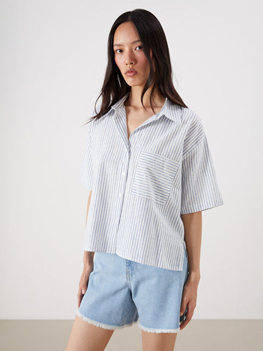 ?izgili Keten Kar???ml? Kad?n G?mlek