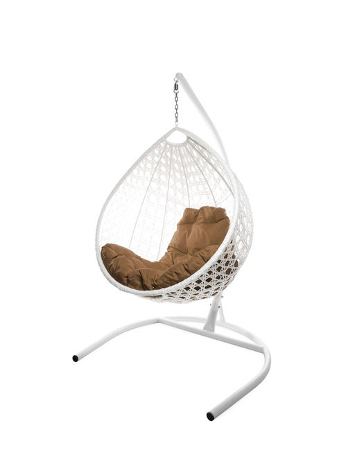 • Кресло - кокон подвесное «Капля люкс», 90×72×193 см, с искусственным ротангом, белое, с бежевой подушкой